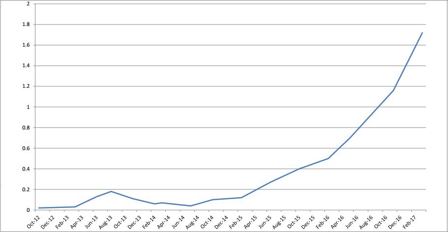 This brings me on to the chart the treatment will start with a PSA lab result of 1.72 calculated to be from Feb16 -Feb 17 7months DT, I will submit charts with PSA results going forward to see what can be achieved currently. I am tested every 3 months using the same lab for consistency, this I hope will give sufferers of this disease some sort of understanding, hope, "other treatments off the radar" a way of moving forward just for clarity. Surgery was 2012- relapse 2013 Radation -2014 PSA rising again to the present day of this submission.